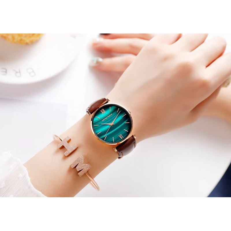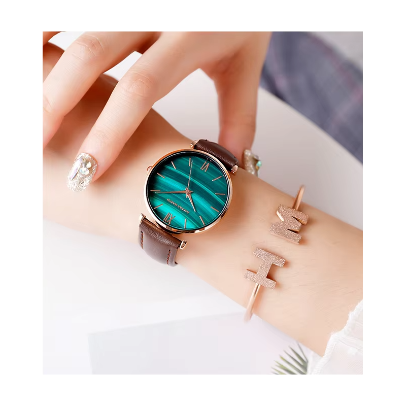 ✅ساعة يد عقارب حزام جلد للنساء