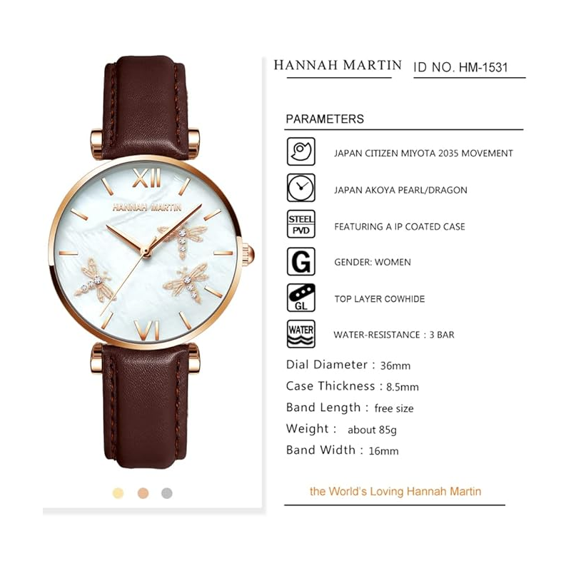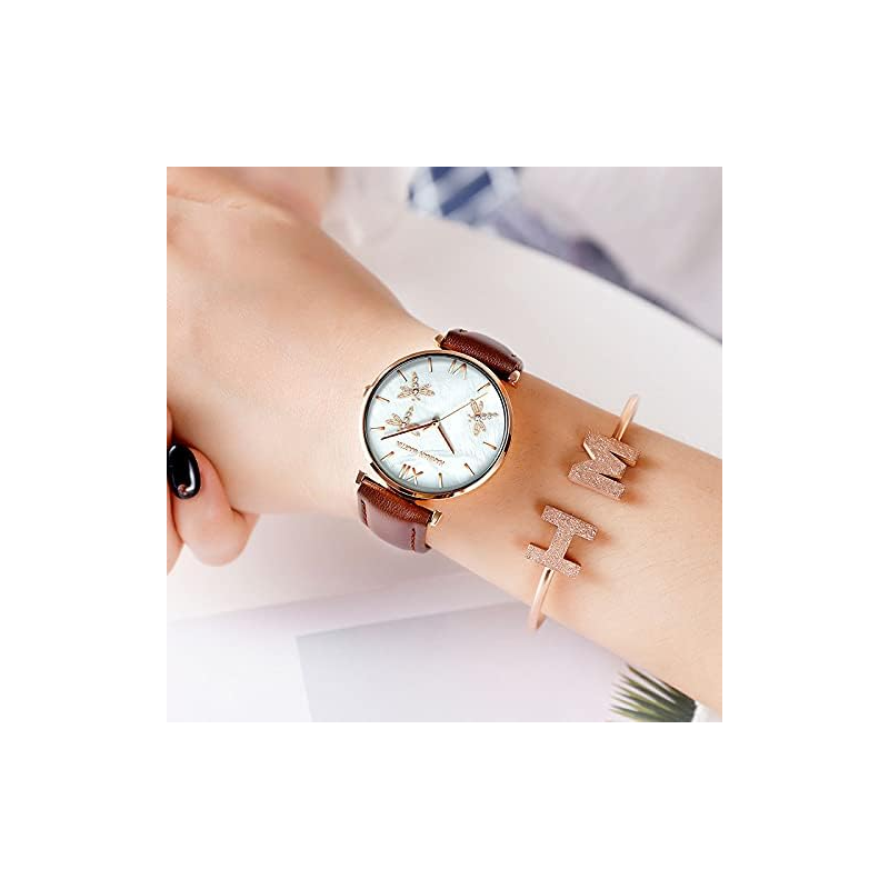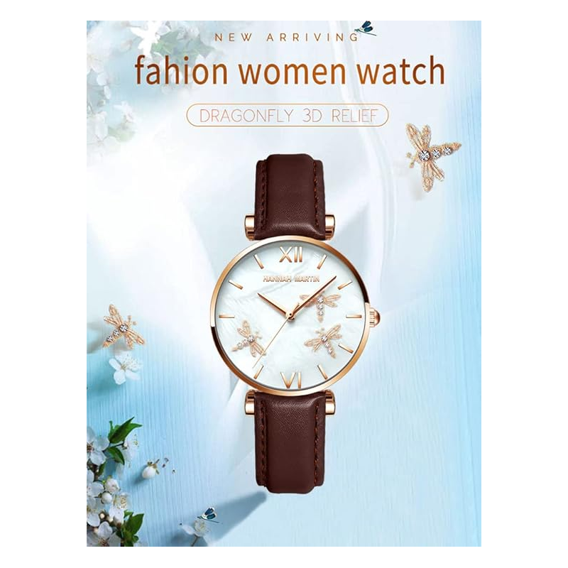 ✅ساعة يد عقارب حزام جلد للنساء