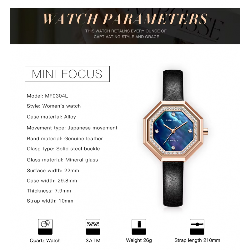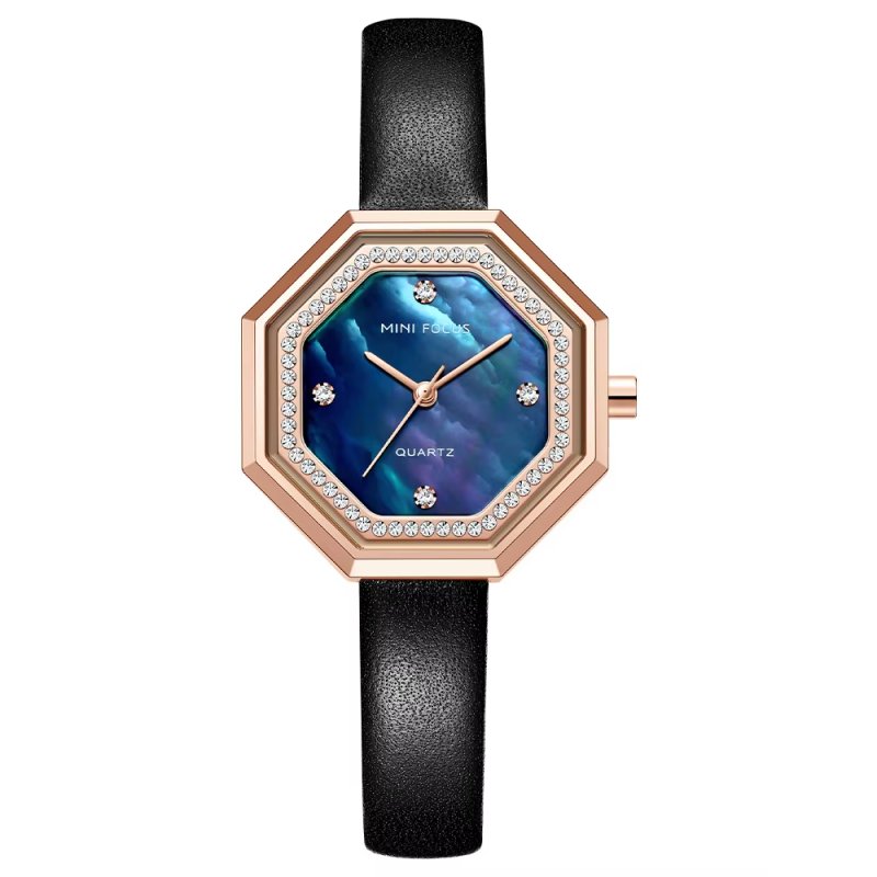 ✅ساعة يد عقارب حزام جلد للنساء