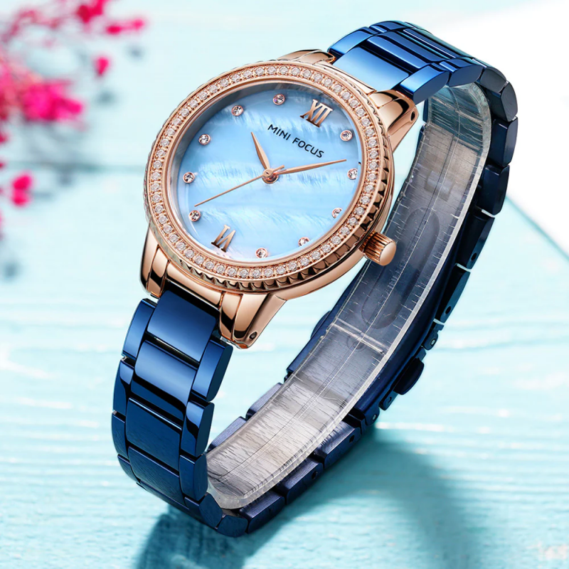 ✅ساعة يد عقارب حزام ستانلس للنساء
