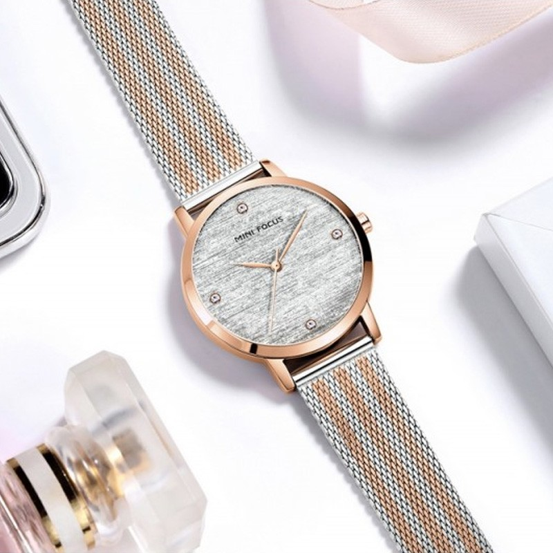 ✅ساعة يد عقارب حزام ستانلس للنساء