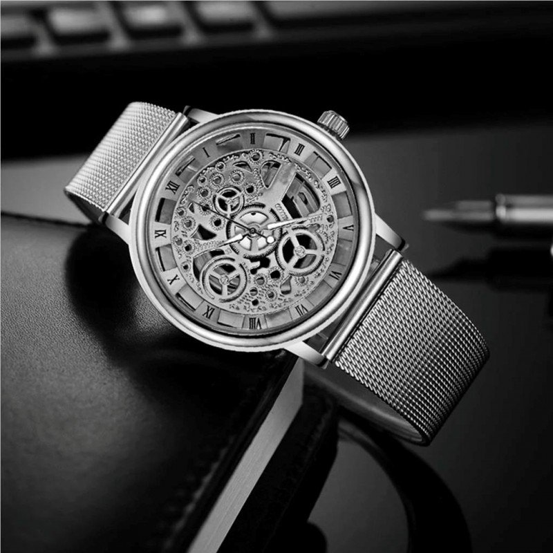 ساعة يد دائرية للنساء والرجال ذات تصميم عصري وأنيق كوارتز من الستانلس ستيل- ماركة MeyKey لون فضي