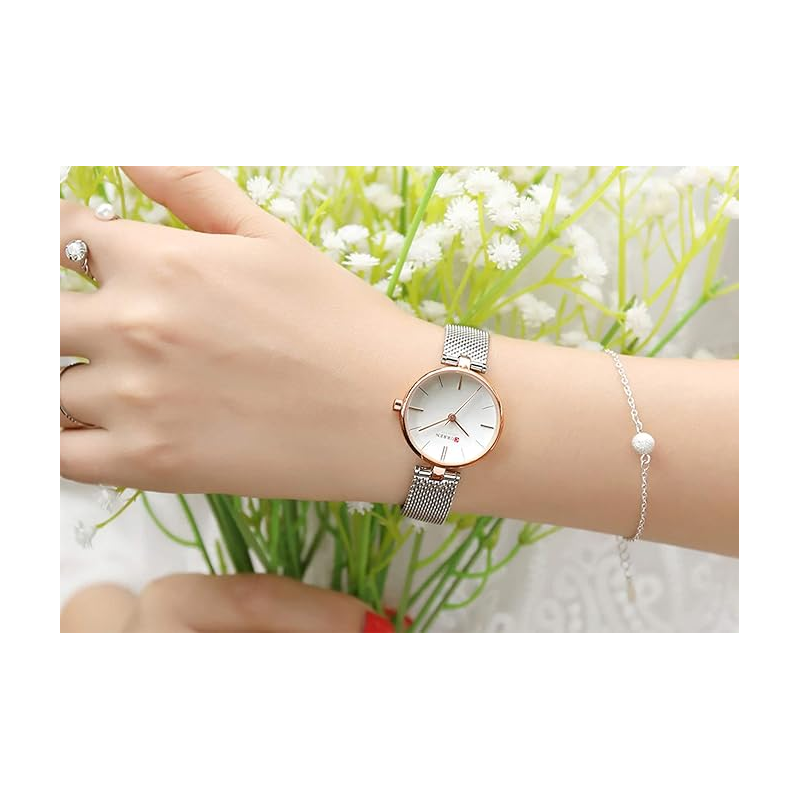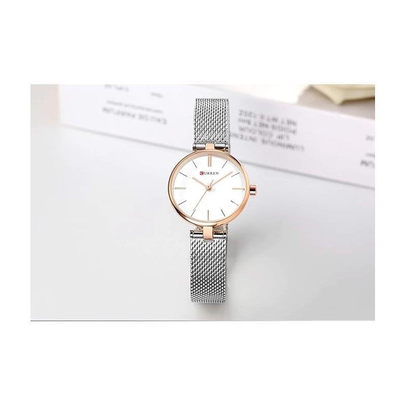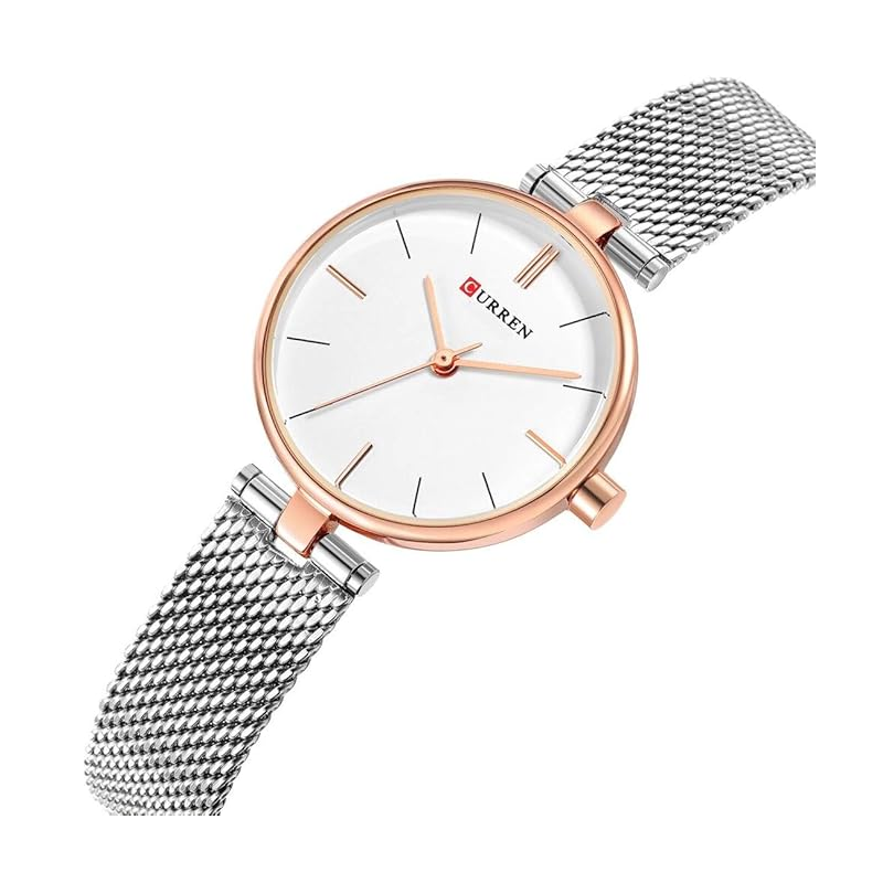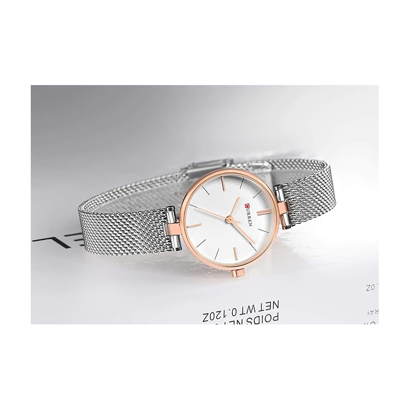 ساعة CURREN ستانلس ستيل ستاتي لون برونزي فضي