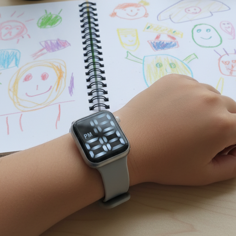 ساعة LED للأطفال – حزام سيليكون لون سكني