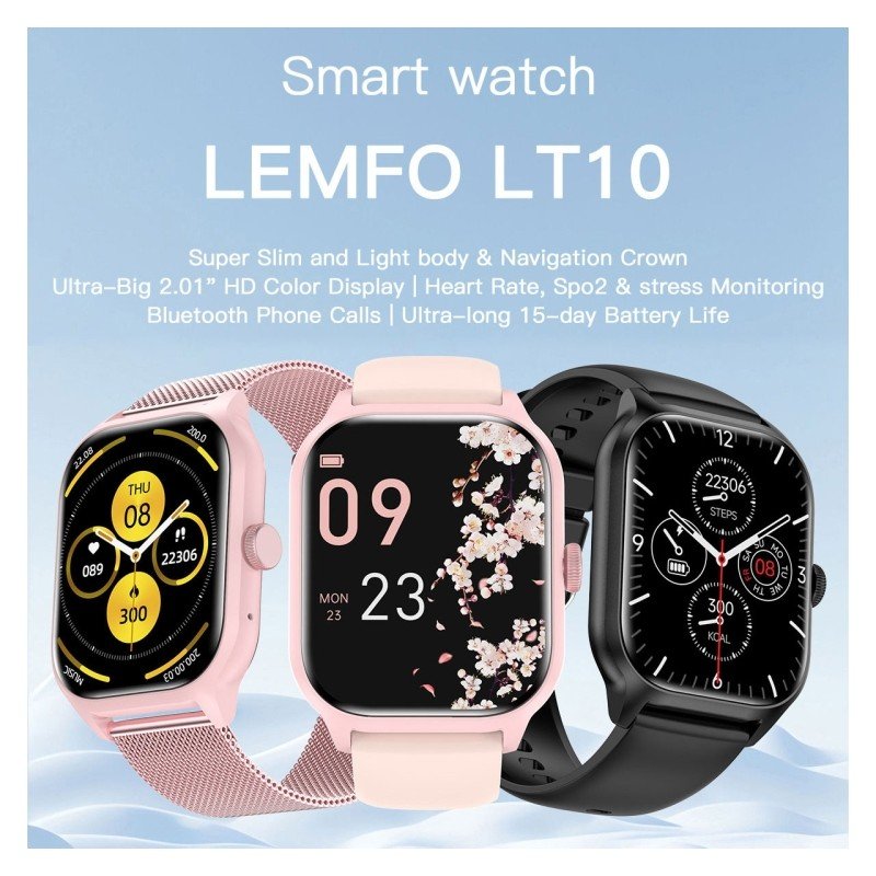 ساعة LEMFO LT10 الذكية 2024 – للرجال والنساء – شاشة لمس كاملة مع حزام سيليكون لون أسود – لاجراء المكالمات وتشغيل الموسيقى، متوافقة مع Android و IOS.