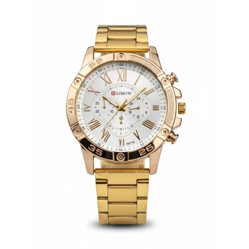 ساعه يد رجالية دائرية ستانلس ستيل لون ذهبي