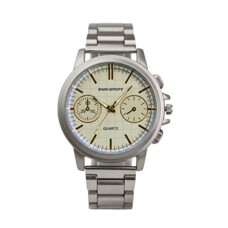 ساعه يد رجالية دائرية ستانلس ستيل لون فضي