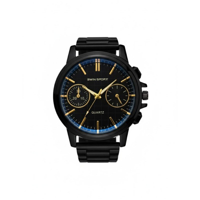ساعه يد رجالية دائرية ستانلس ستيل لون أسود
