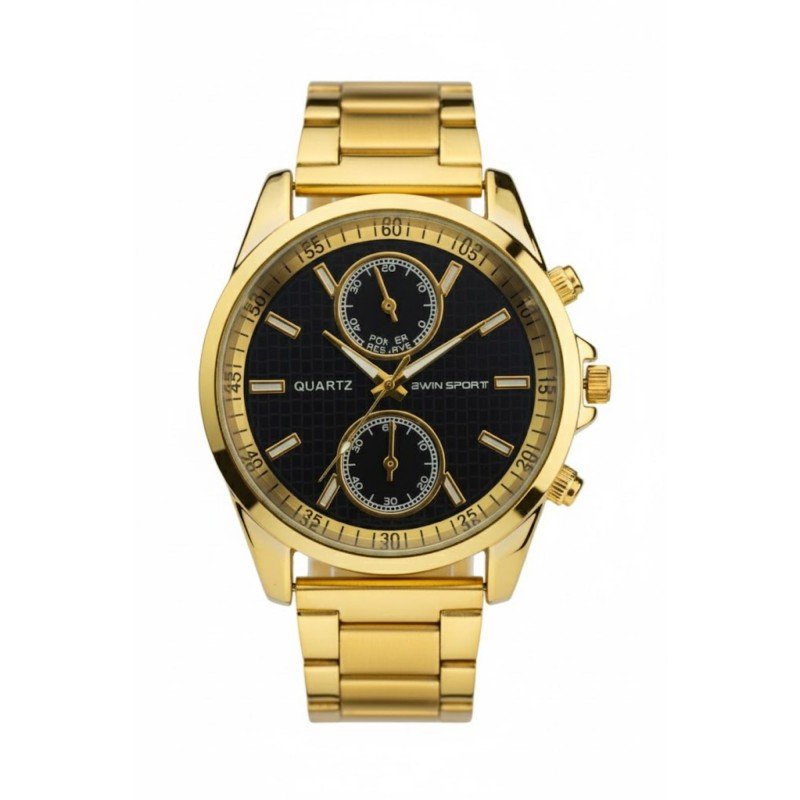 ساعه يد رجالية دائرية ستانلس ستيل لون ذهبي