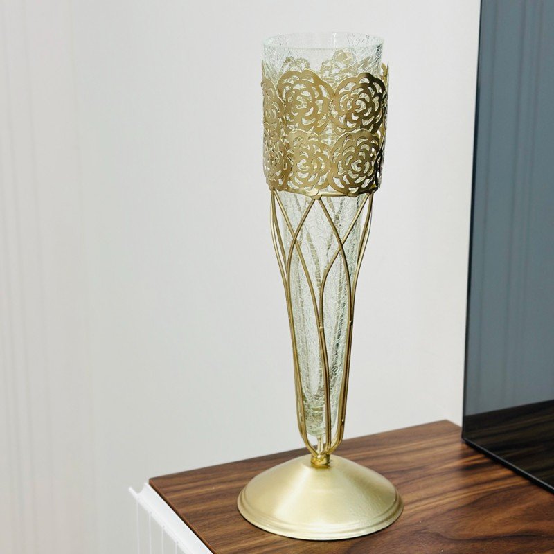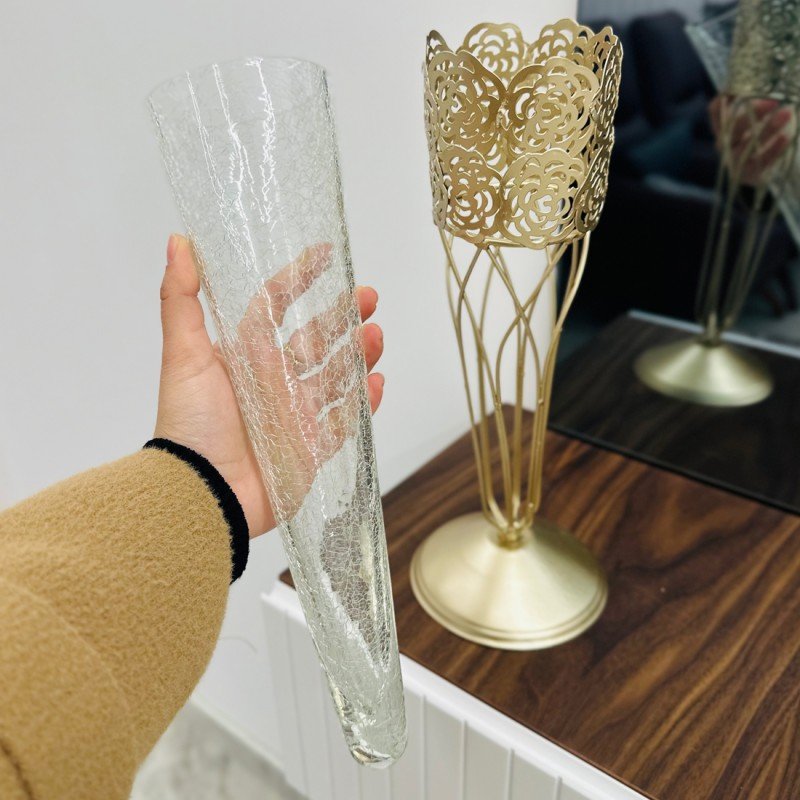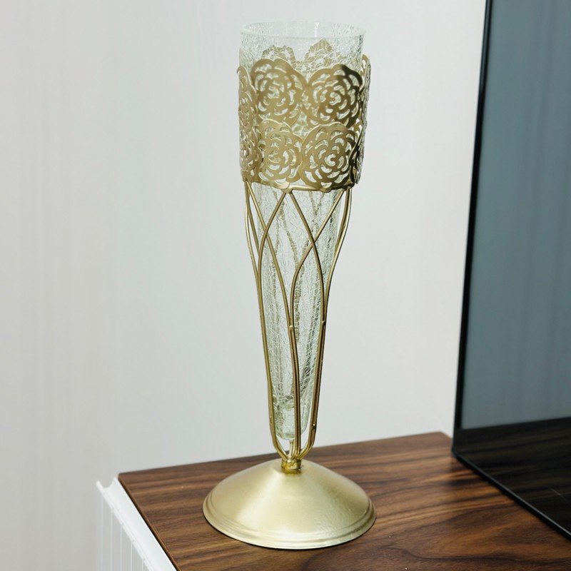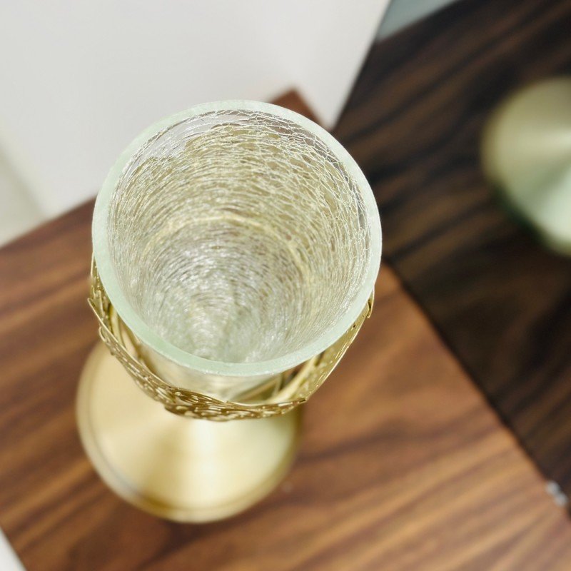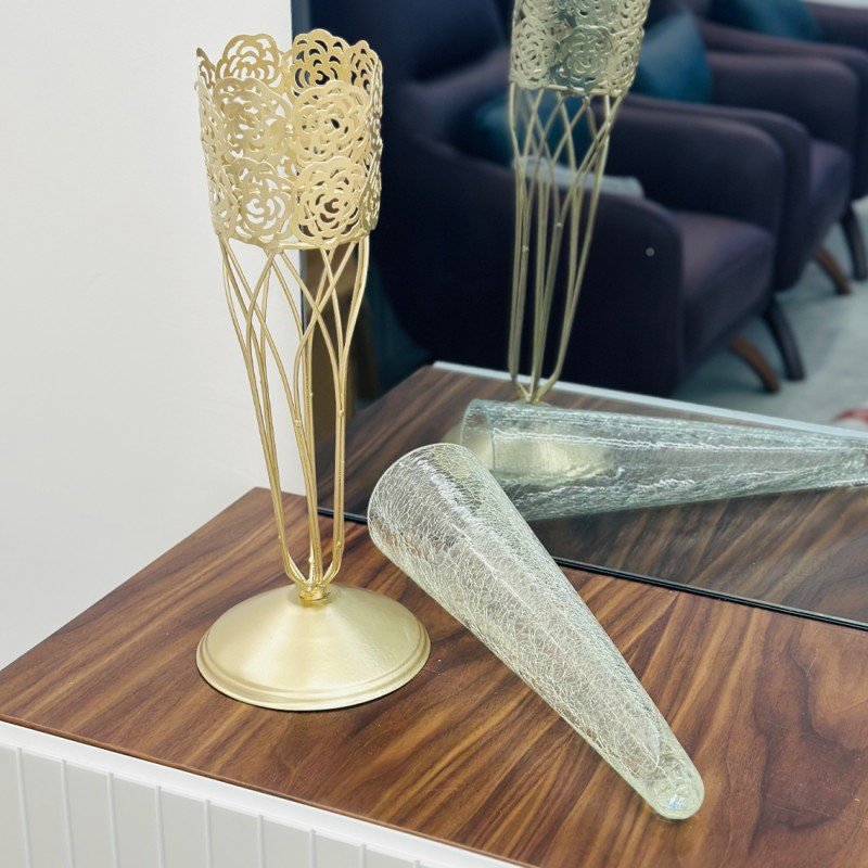 اضف لمسة من الأناقة والرقي لديكور منزلك مع ستاندنا المميز الذي يجمع بين جمال الزجاج وفخامة المعدن الذهبي.