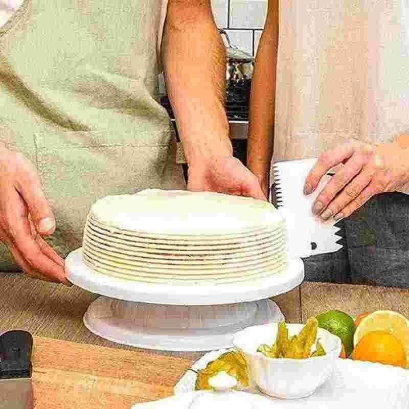 تصميم دوار: يتيح لك التدوير السلس للستاند العمل على جوانب الكيك بشكل متساوٍ ودقيق، مما يساعدك في تطبيق الزينة والديكورات بشكل مثالي.