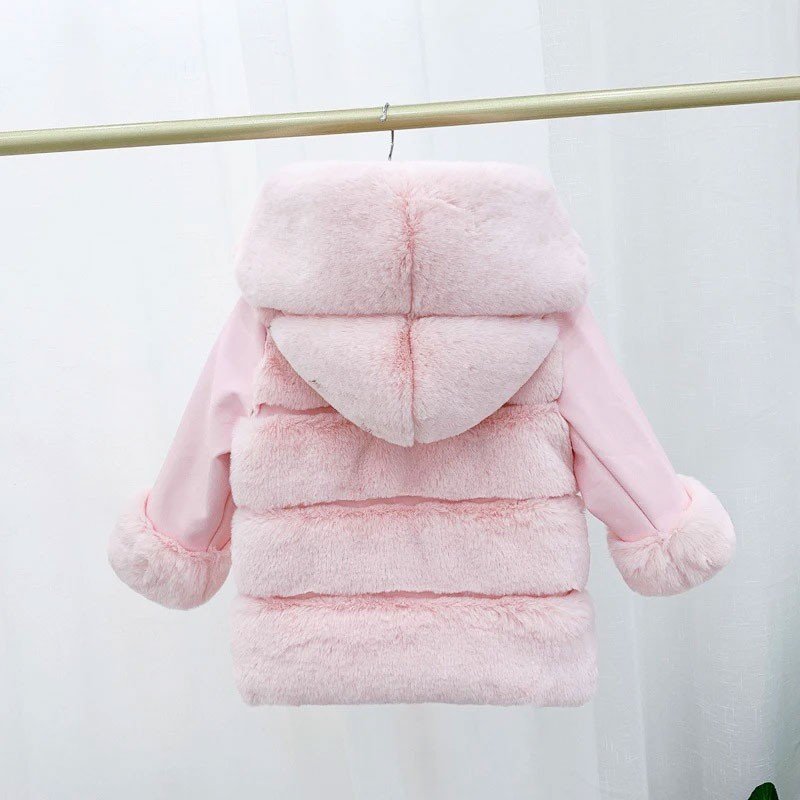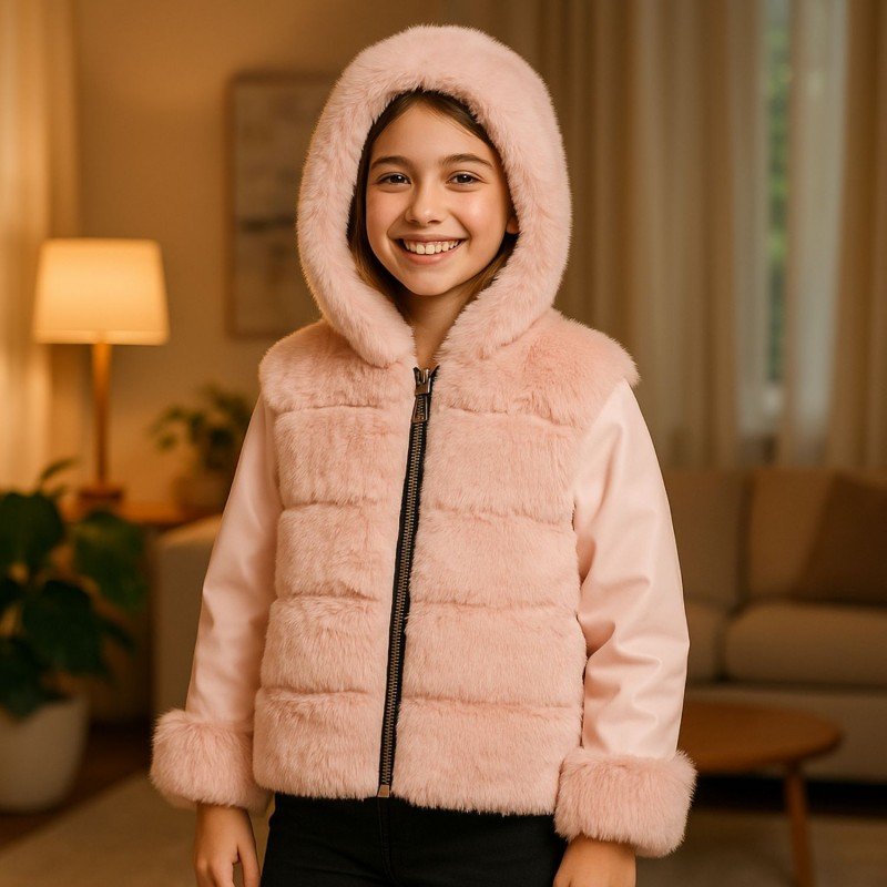 ✅ تصميم بأكمام جلد طويلة مع طاقية فرو مدمجة غير قابلة للإزالة بأطراف وأساور فرو .