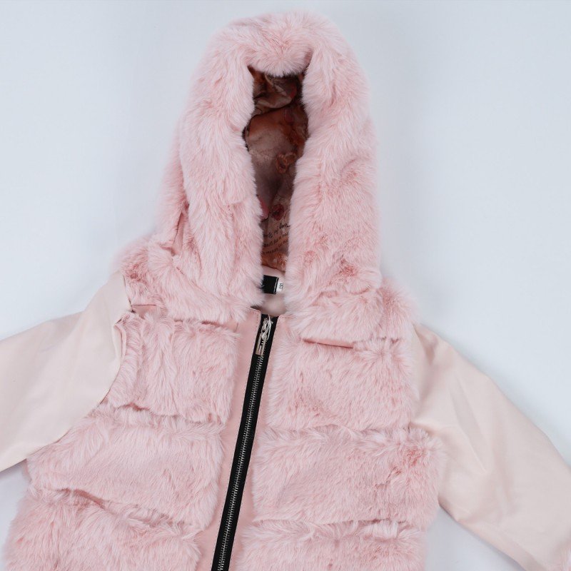 ✅ السترة تأتي بأكمام طويلة بأطراف وأساور فرو، وطاقية فرو غير قابلة للإزالة مدروزة بالفرو على الحواف مع جيوب جانبية عدد 2.