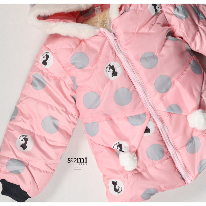 سترة مبطنة فرو للأطفال لون زهري وتصميم دوائر من Sami Boutique