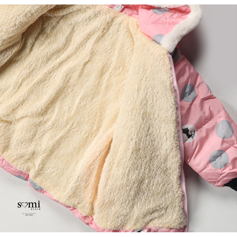 Be the first to review “سترة مبطنة فرو للأطفال لون زهري وتصميم دوائر من Sami Boutique”