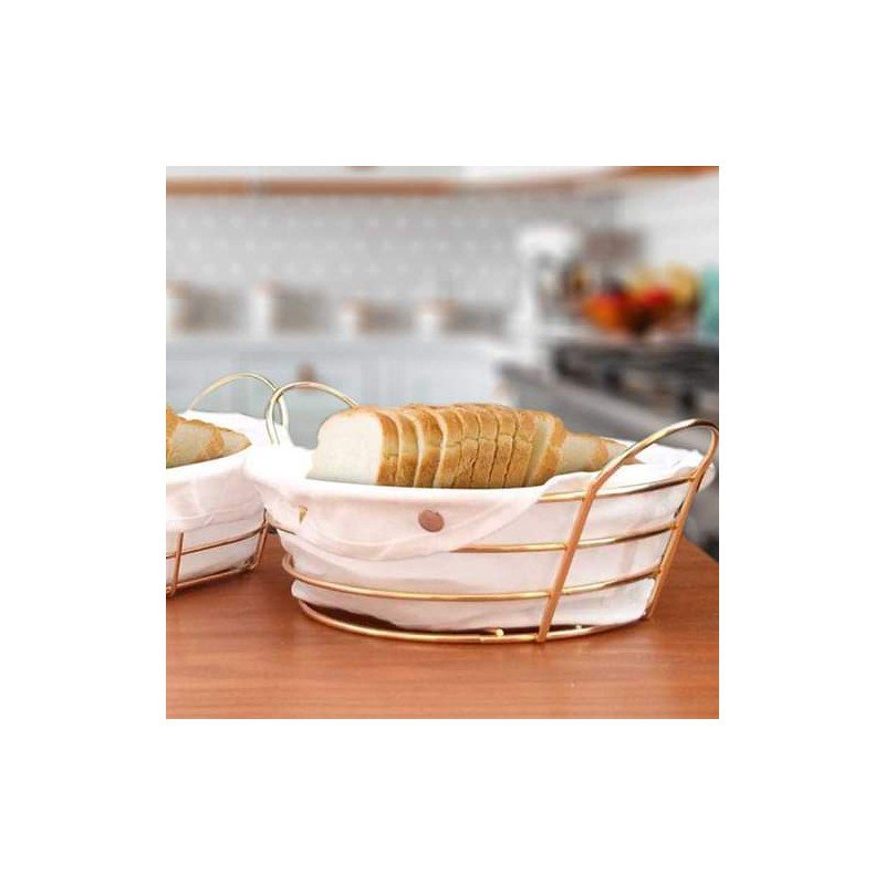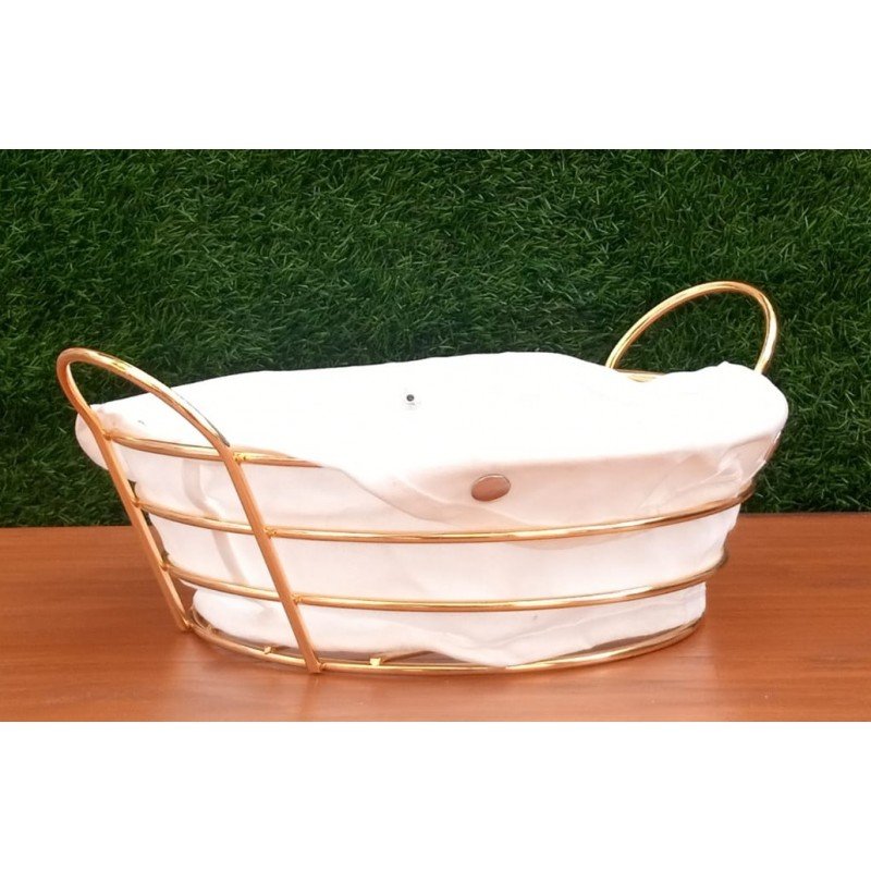 سلة خبز بيضاوي ذهبي مع قماش