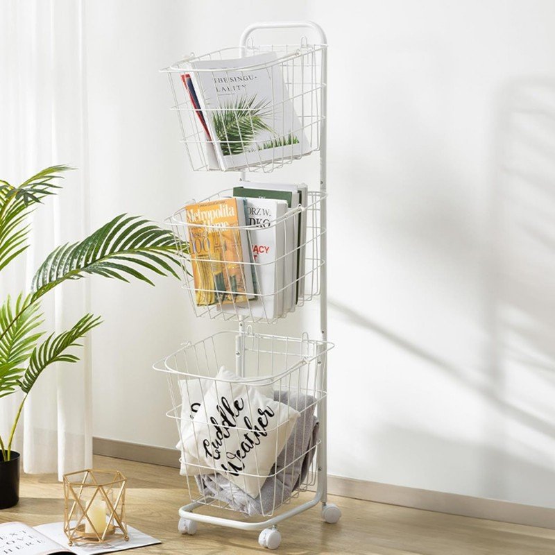 ثلاث سلال واسعة: توفر مساحة كافية لتخزين الكتب، المجلات، الوسائد، أو أي مستلزمات أخرى.
