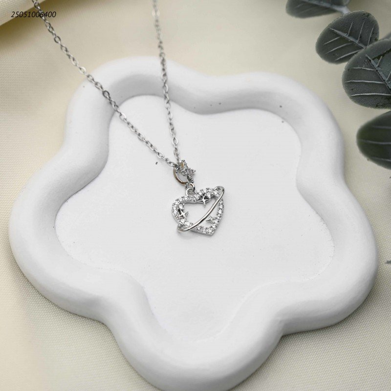 سلسال أنيق بتصميم قلب كوكبي مرصعة بالزركون اللامع لون فضي