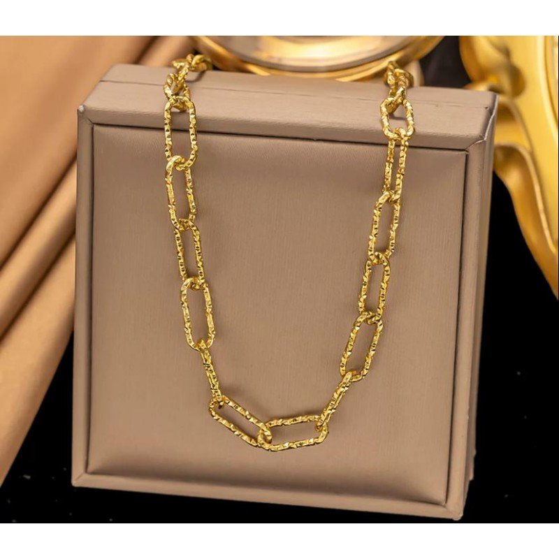 ✅ الفئة المستهدفة: النساء.✅ التصميم: سلسال بتصميم جنزير ذهبي فخم وعصري، يضيف لمسة من القوة والجاذبية لإطلالتك.✅ اللون: ذهبي لامع، يعكس الأناقة ويكمل أي إطلالة.✅ الأسلوب: عصري، قوي، يناسب الإطلالات اليومية أو الرسمية.✅ المناسبة: مناسب للأوقات اليومية، الحفلات، والمناسبات الخاصة حيث تحتاجين إلى لمسة من الفخامة.