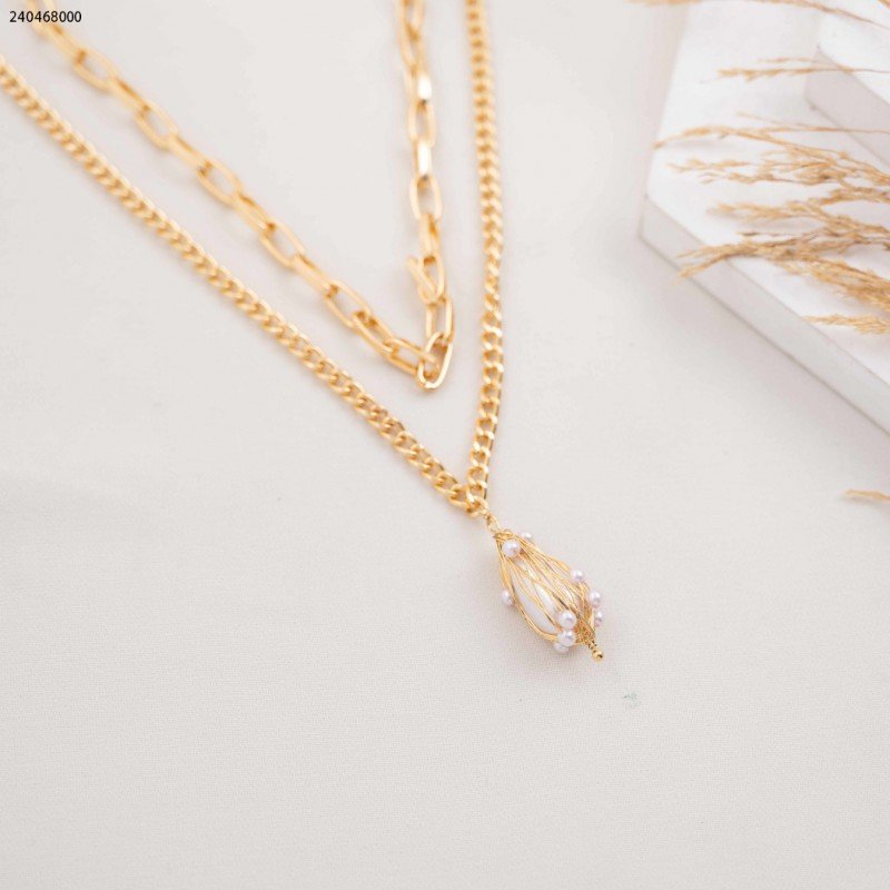 سلسال جنزير طبقتين مع تعليقة لولو لون ذهبي كفالة سنتين ضد تغير اللون