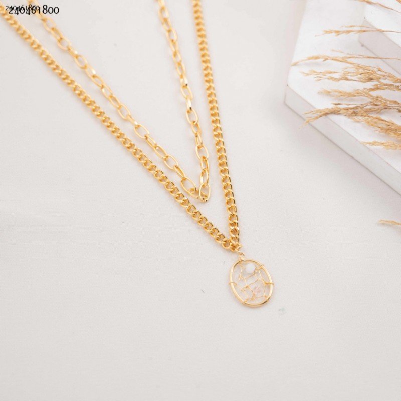 سلسال جنزير طبقتين مع شكل بيضاوي و لولو لون ذهبي كفالة سنتين ضد تغير اللون