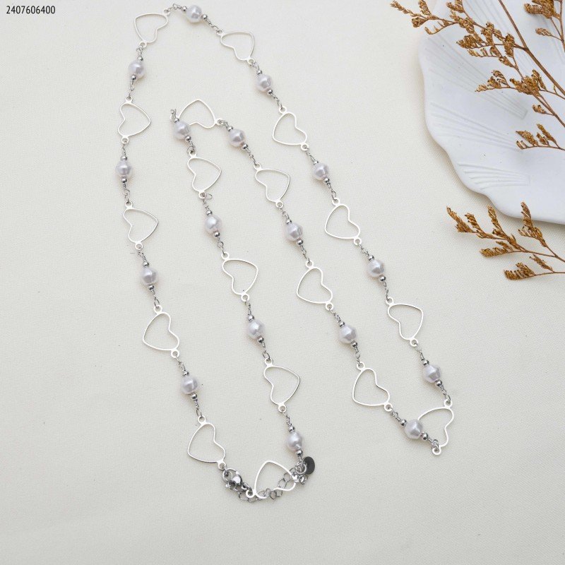 سلسال حبات لولو قلوب مع حلقات قلوب لون فضي