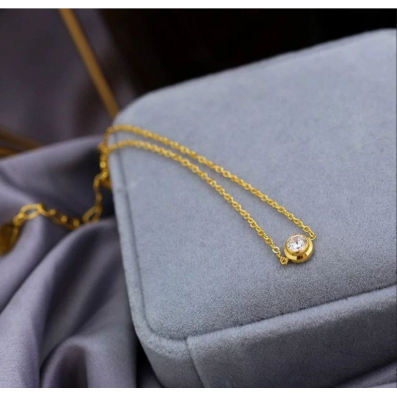 ✅ الفئة المستهدفة: النساء.✅ التصميم: سلسال أنيق مزين بحجر زركون أبيض لامع، يعكس الفخامة والجمال الطبيعي.✅ اللون: ذهبي لامع مع حجر زركون أبيض يتألق بإشراقة واضحة.✅ الأسلوب: عصري، فاخر، وراقي.✅ المناسبة: مثالي للمناسبات الخاصة، الحفلات، أو لإضافة لمسة من التألق في إطلالتك اليومية.