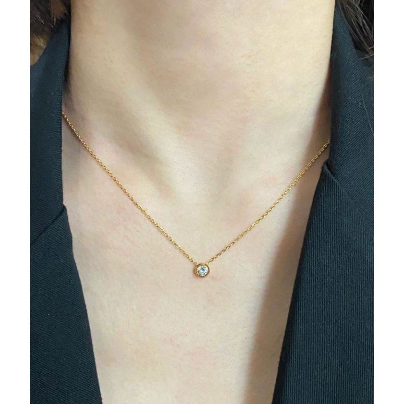سلسال ذهبي بتصميم حجر زركون أبيض