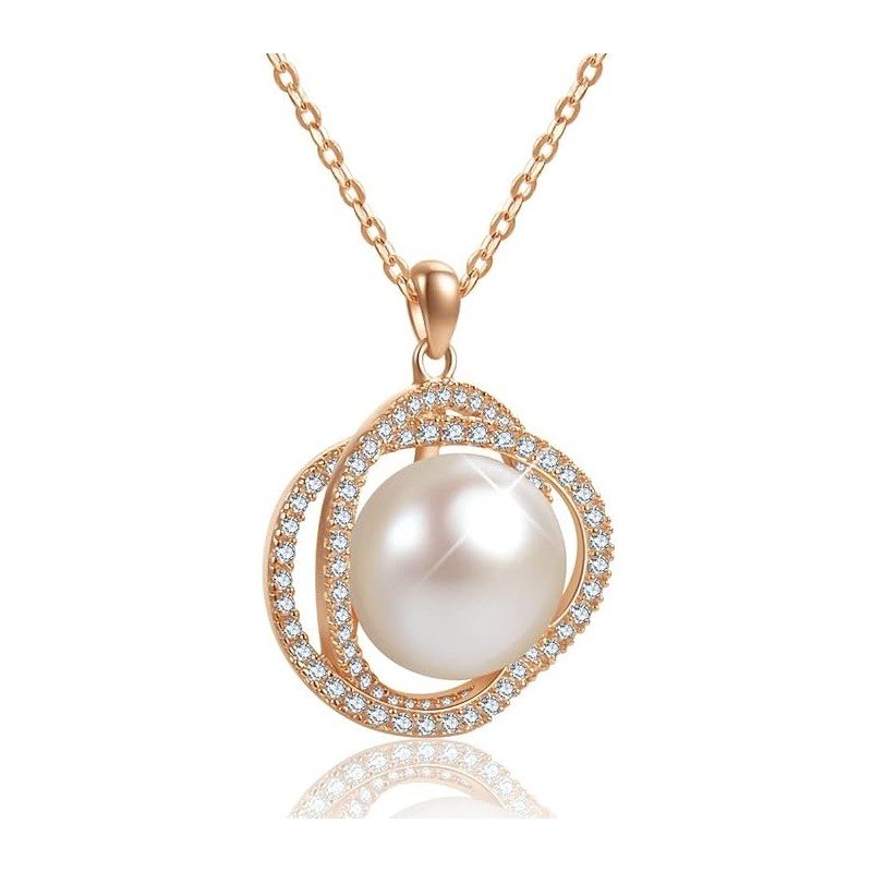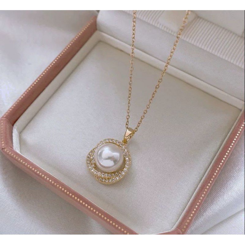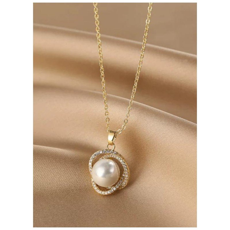 سلسال ذهبي بتصميم زركون أبيض مع لؤلؤ
