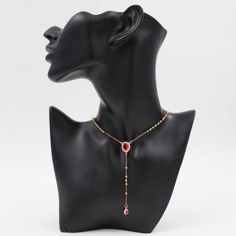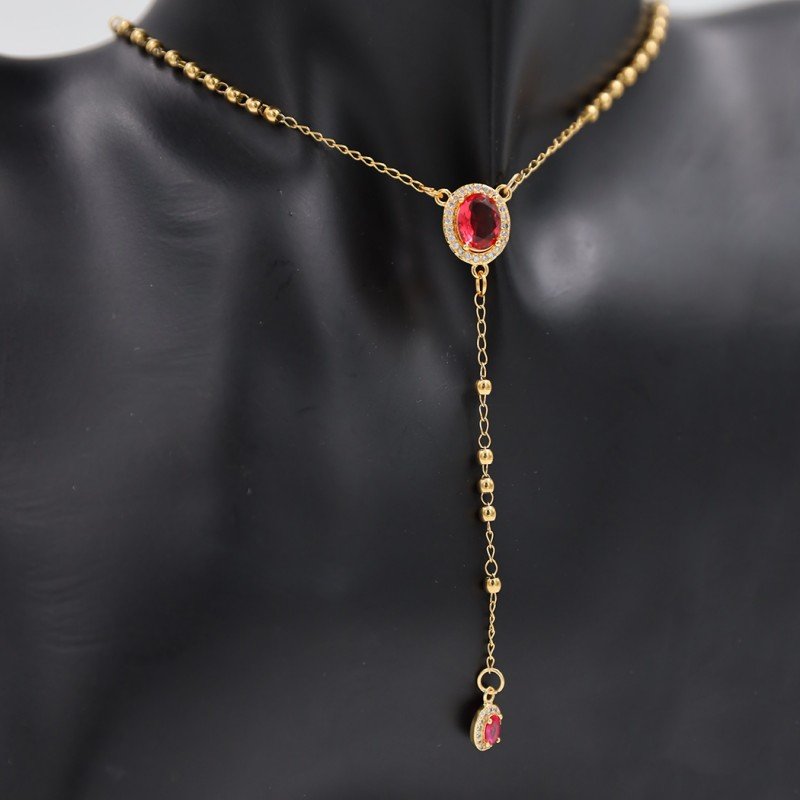 ✅ سلسال ذهبي بتصميم زركون أحمر بيضاوي