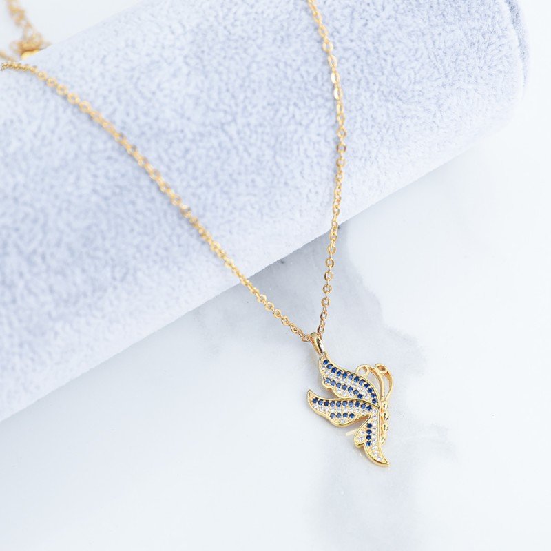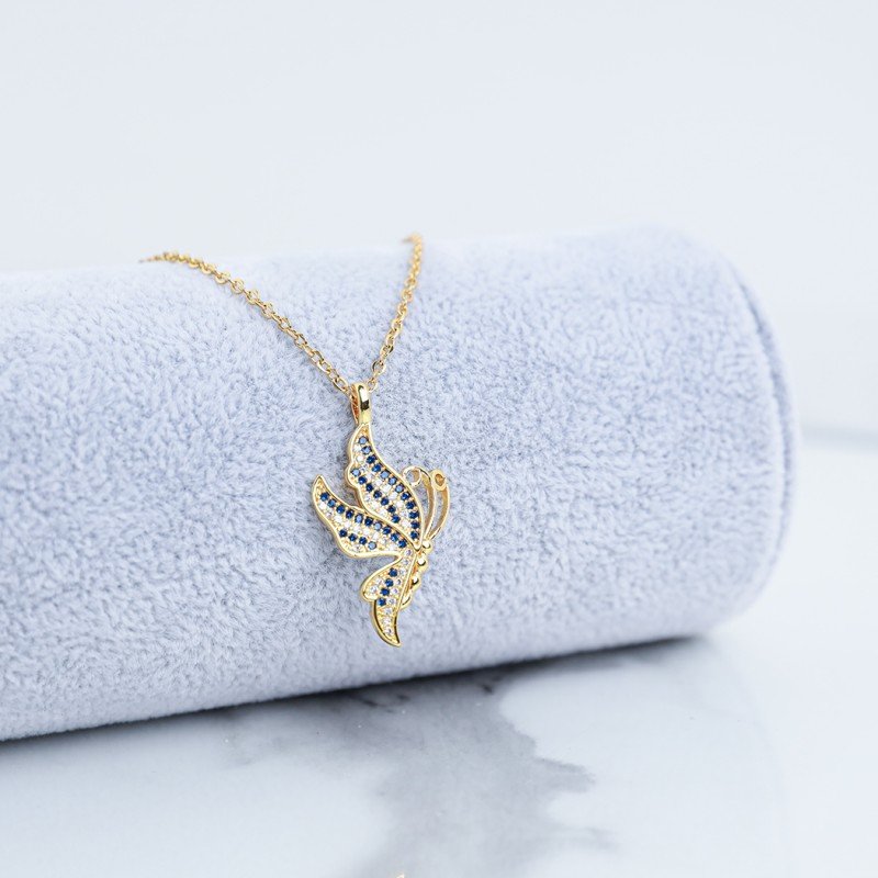 سلسال ذهبي بتصميم فراشة مع زركون كحلي