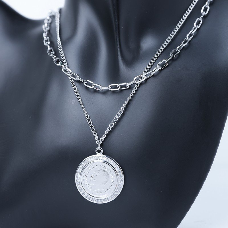 ✅ التصميم:سلسال فضي مزين بتعليقة على شكل ليرة مرصعة بحجر زركون مشرق، بتفاصيل دقيقة تضفي مظهرًا فخمًا وأناقة مميزة.