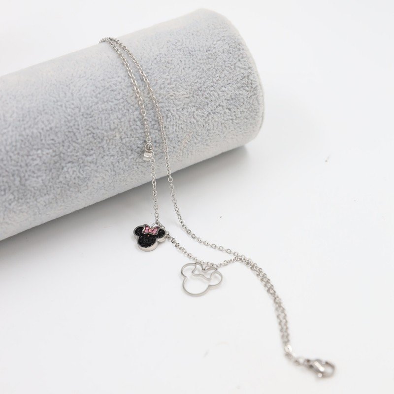 ✅ سلسال فضي طبقتين بتصميم ميكي ماوس