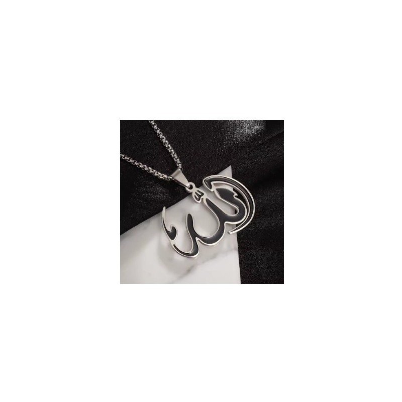 سلسال قلادة مميزة للنساء بلفظ الجلالة – مصنوعة من الستانلس ستيل المقاوم للصدأ – لون فضي