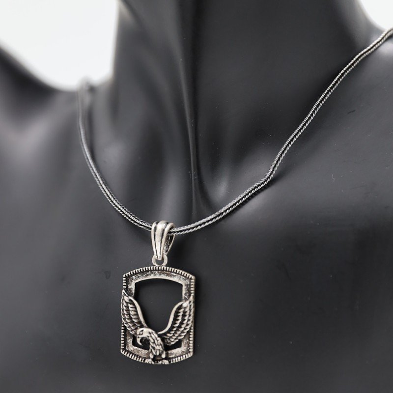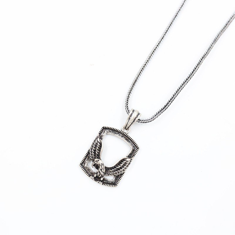 ✅ سلسال للشباب بتصميم “صقر مع مربع لون فضي وأسود”