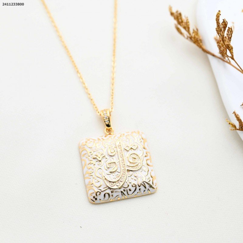 سلسال مربع مع كلمة قل من القرآن الكريم لون ذهبي و أبيض كفالة سنتين ضد تغير اللون