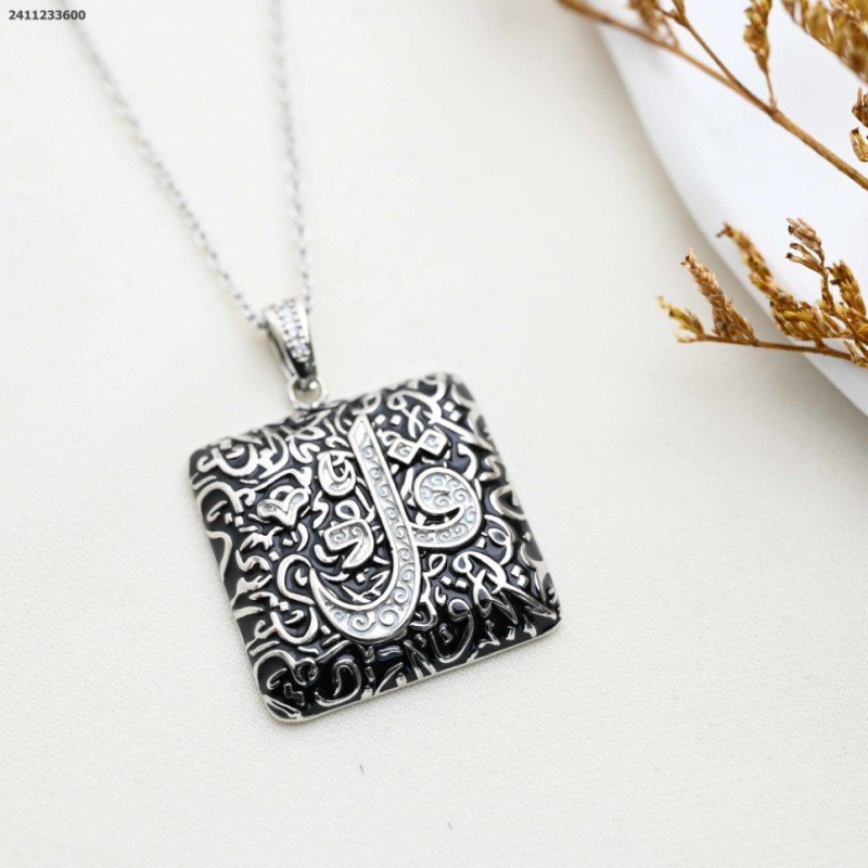 سلسال مربع مع كلمة قل من القرآن الكريم لون فضي وأسود كفالة سنتين ضد تغير اللون
