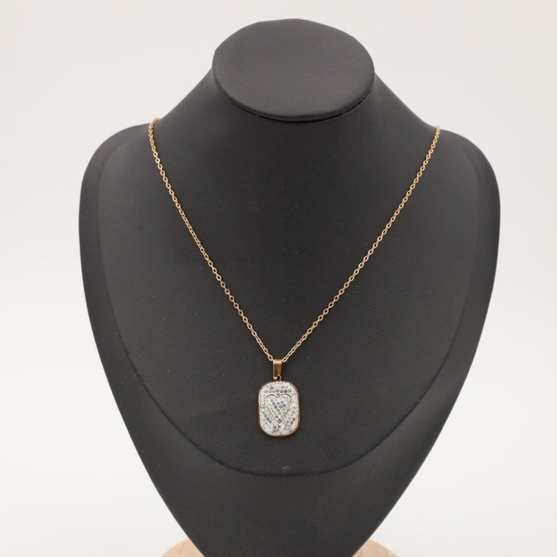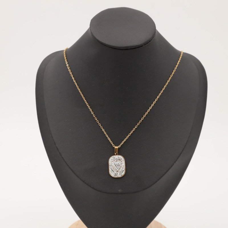 سلسال مستطيل زركون محفور قلب في النص لون ذهبي