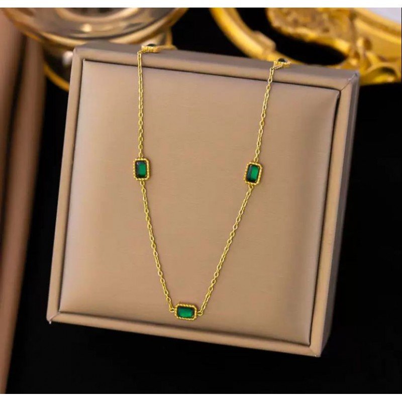 ✅ سلسال مع خرز أخضر مربع ناعم