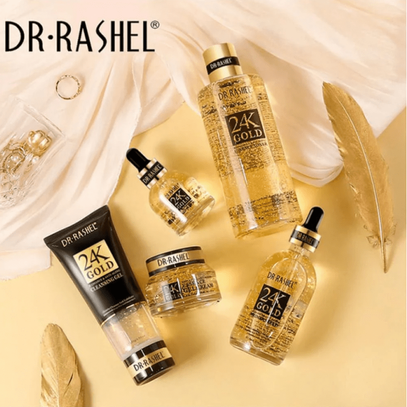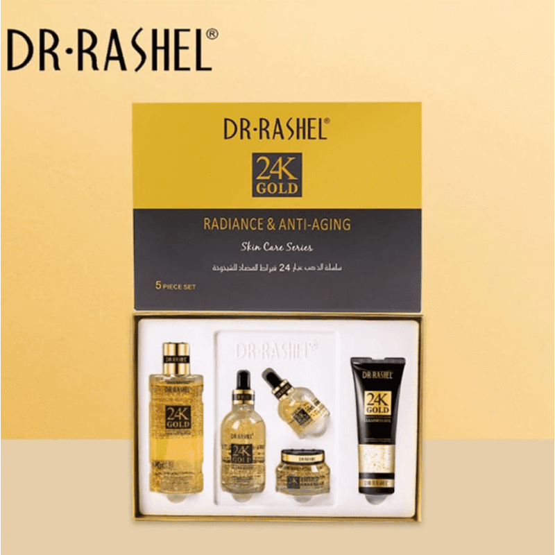 د. راشيل طقم 5 قطع من مجموعة الذهب عيار 24 قيراط ومضادة للشيخوخة