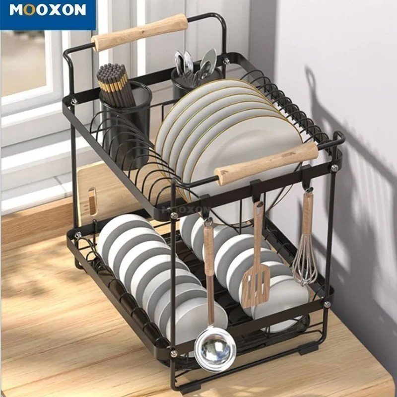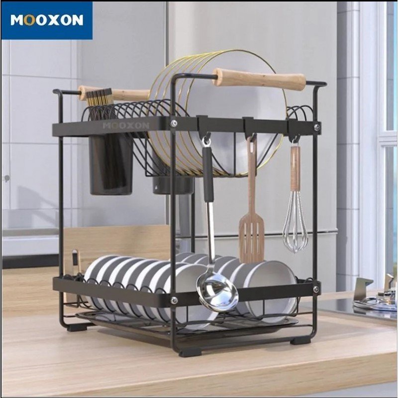 تشمل 1 رف أطباق / 1 رف صحون/ 1 رف لوح تقطيع/ 3 علاقات/ 1 رف أدوات المائدة