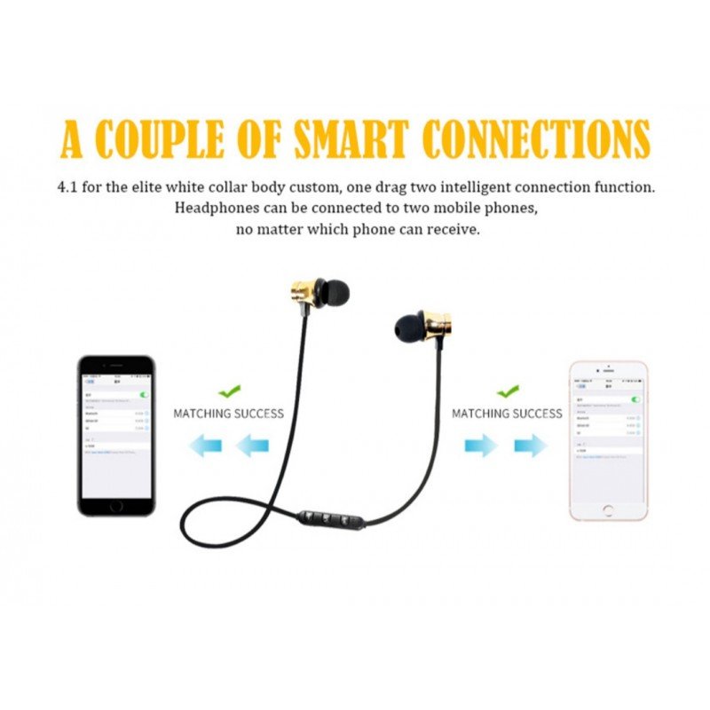 سماعات لاسلكية مع مايكروفون للرد على المكالمات وسماع الموسيقى والتنقل بين المقاطع يمكنك شحنها بواسطة شاحن mini usb مثل جالاكسي . تحوي على ثلاثة ازرار للإتصال ورفع الصوت والتنقل بين الأغاني و للتشغيل والإطفاء وتشغيل الموسيقى وايقافها .