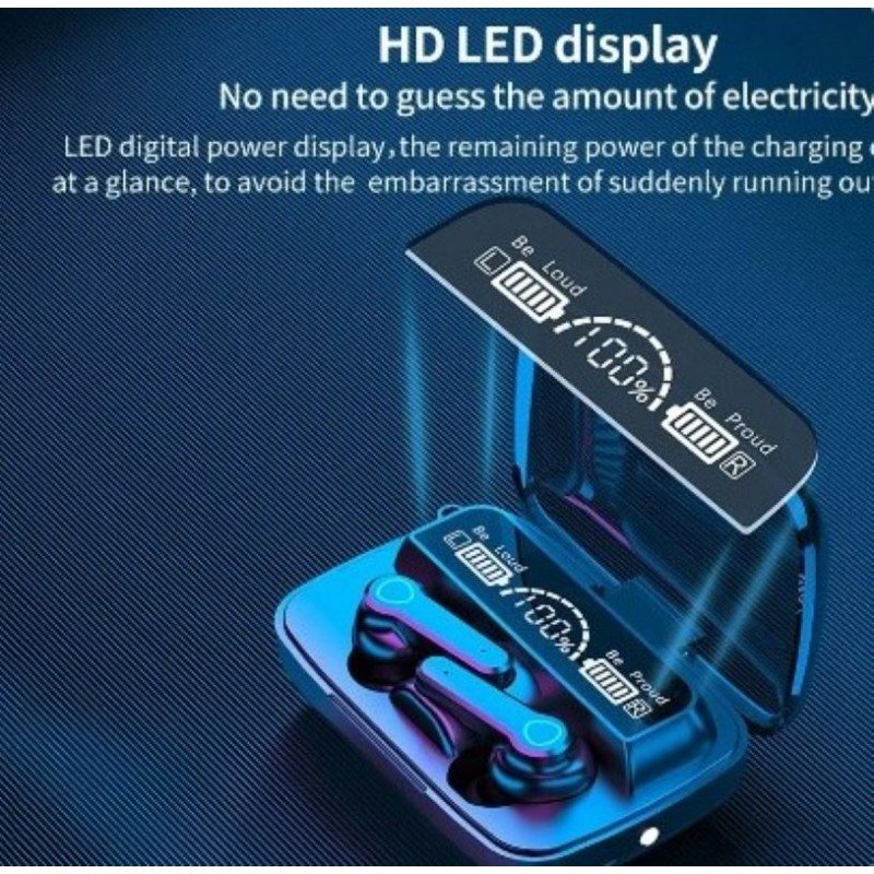 سماعة أذن ايربود لاسلكية M19 TWS تعمل بتقنية البلوتوث V5.1 ومقاومة لرذاذ الماء بخاصية تقليل الضوضاء مع شاشة رقمية وإضاءة LED وميكروفون وضوء كشاف