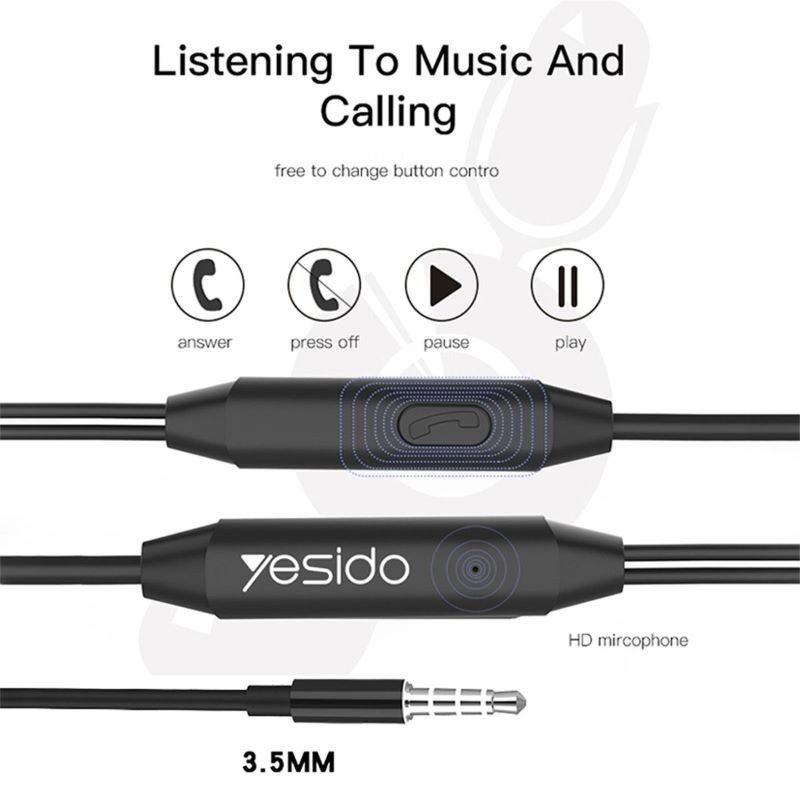 سماعة أذن YH23 سلكية مع ميكروفون من YESIDO، بمدخل 3.5 ملم