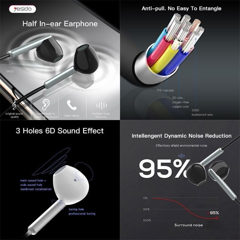 Be the first to review “سماعة أذن YH23 سلكية مع ميكروفون من YESIDO، بمدخل 3.5 ملم”