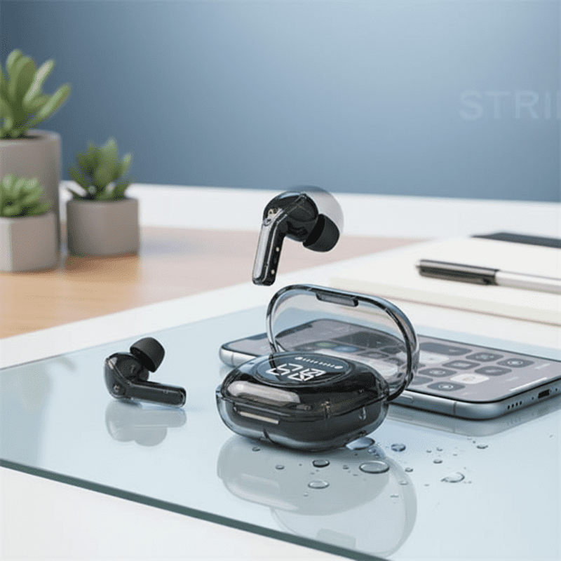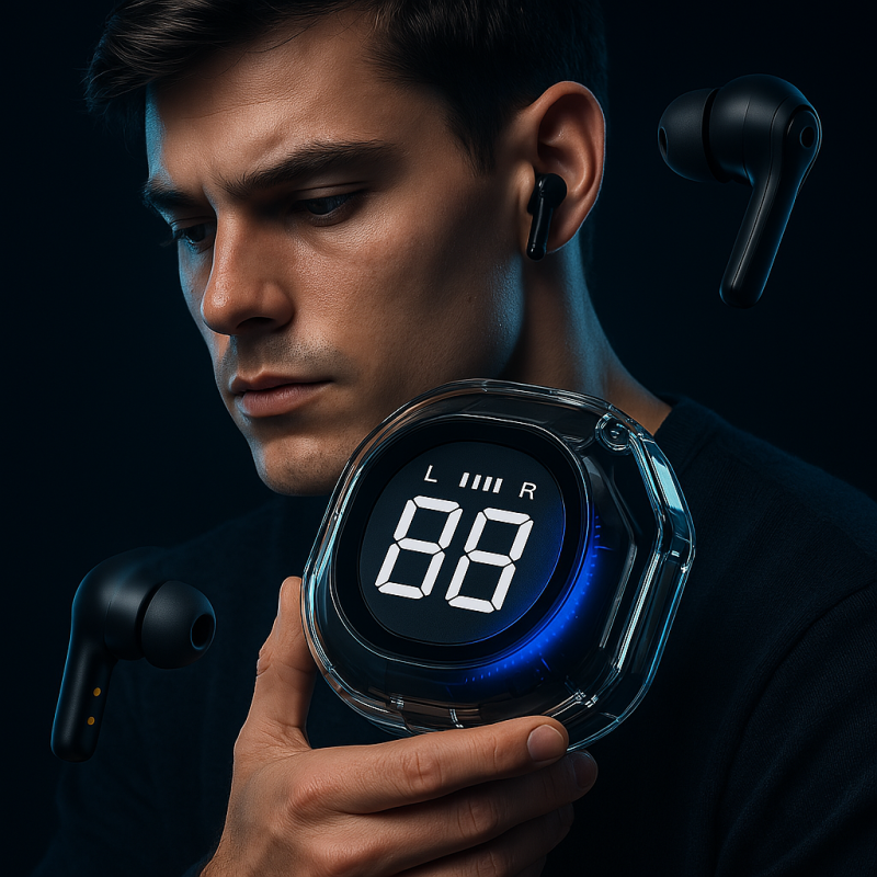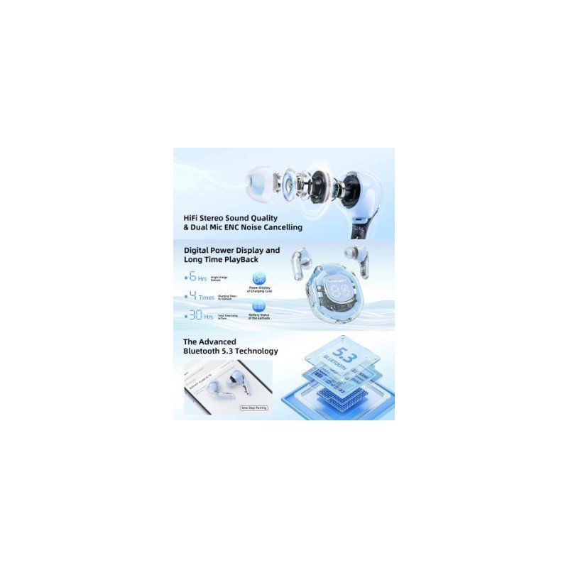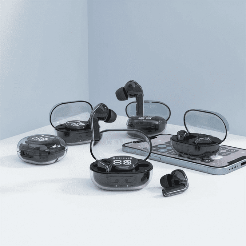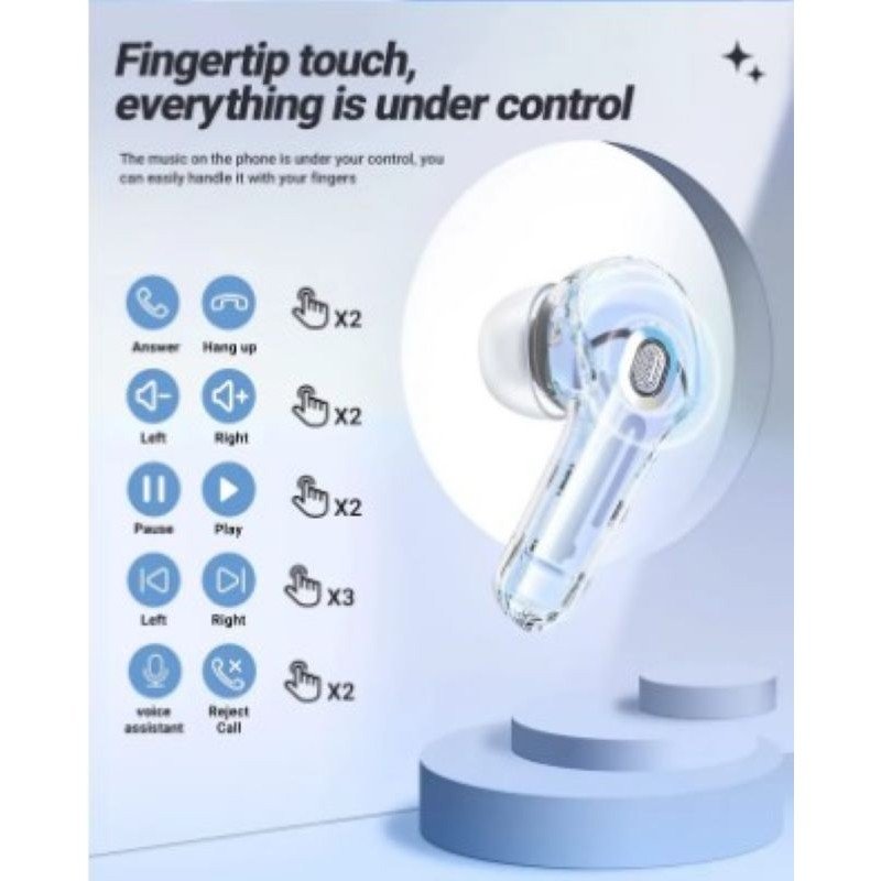 سماعة ايربود بلوتوث لاسلكية شاشة رقمية شفافة واضاءة led