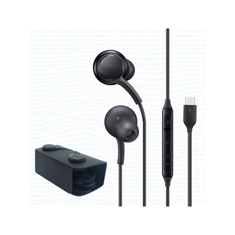 سماعات أذن سلكية بمنفذ تايب سي لون أسود سماعة TYPE-C محيطية بنظام AKG