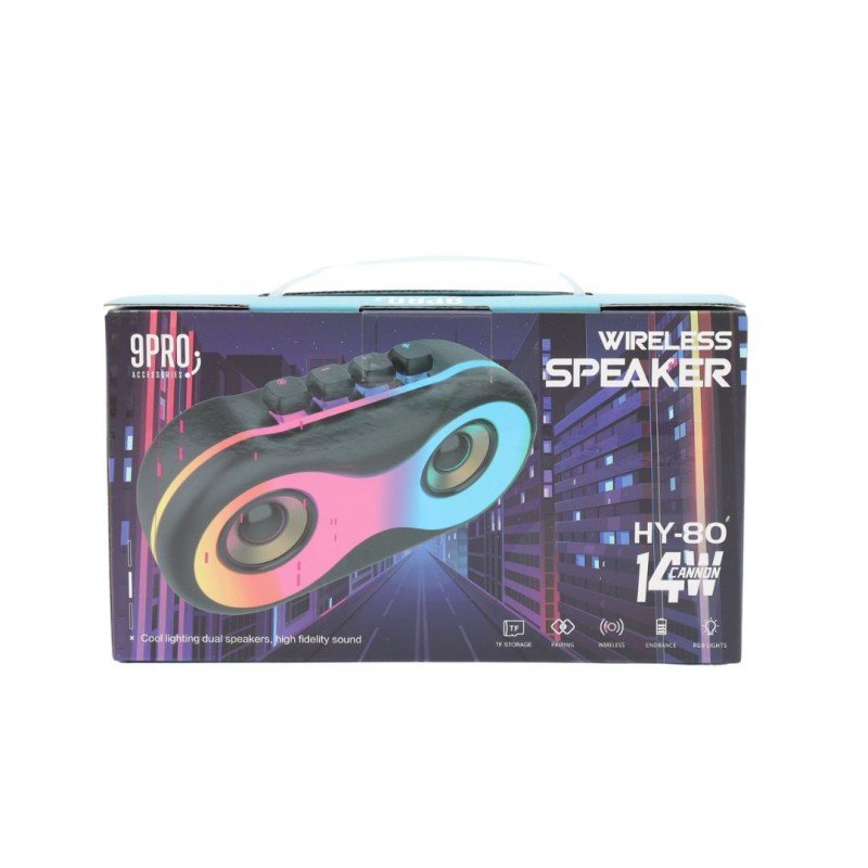 سماعة HY 80 من 9PRO توفر أداء صوتي واضح وقوي بقدرة 14 واط RMS، لتكون خيارًا مناسبًا للاستخدام اليومي في المنزل أو أثناء التنقل. تتميز بتصميم عصري مدمج مع إضاءة جذابة تضيف لمسة أنيقة عند تشغيل الموسيقى.