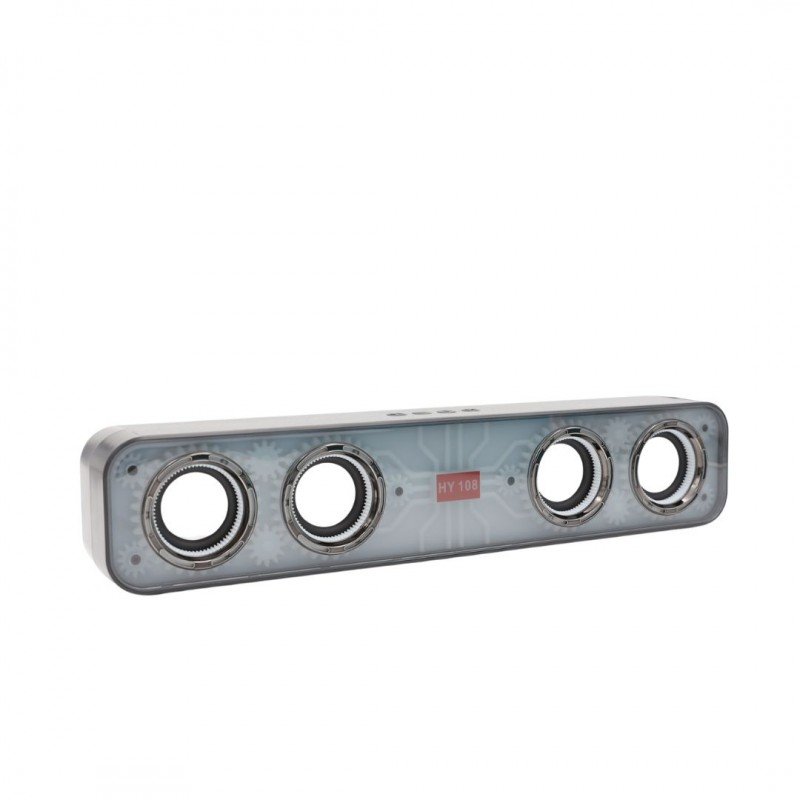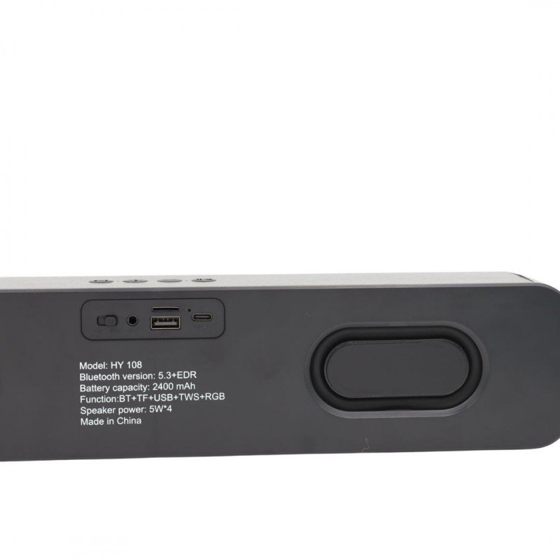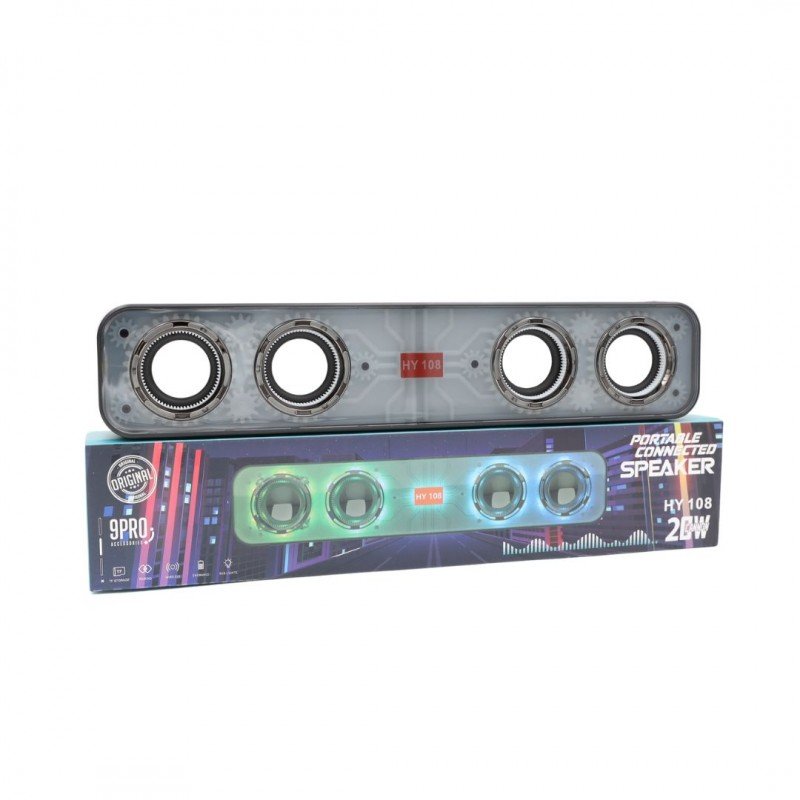 سماعة HY 108 المحمولة من 9PRO تقدم تجربة صوت قوية وواضحة بقدرة 20W RMS، مع تصميم عصري أنيق يناسب الاستخدام المنزلي أو أثناء الرحلات والجلسات مع الأصدقاء. تتميز بمظهر جذاب مع إضاءة LED تضيف لمسة حيوية أثناء تشغيل الموسيقى.
