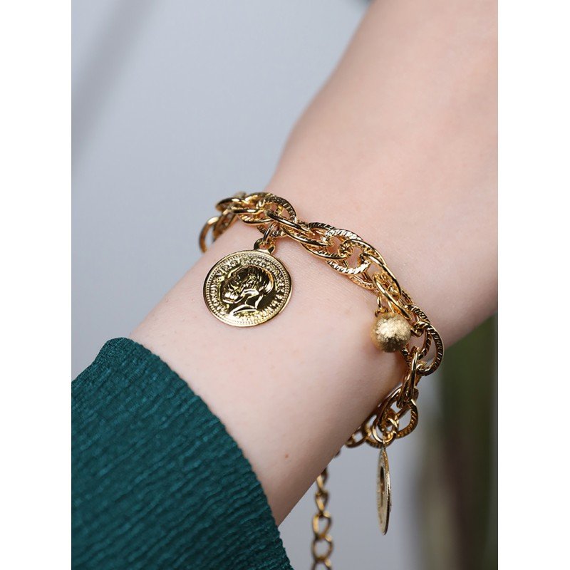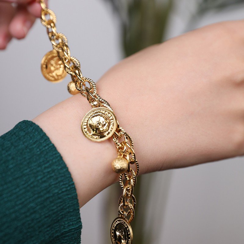✅ التصميم:تصميم السوار يدمج بين شكل الجنزير الكلاسيكي مع 3 ليرات إنجليزي، مما يضيف لمسة من الفخامة والرقي. الليرات الإنجليزي تعكس التقليد الراقي، بينما الجنزير يضفي لمسة عصرية على التصميم.